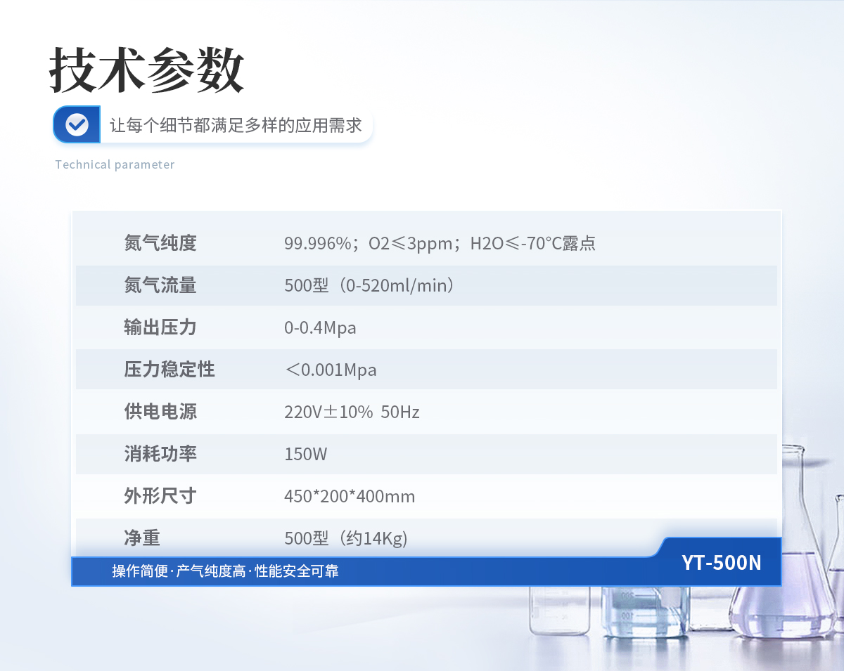 1、可取代高壓氮?dú)馄?,使?shí)驗(yàn)室儀器化。 2、操作簡便,只需啟動(dòng)電源開關(guān),儀器即可產(chǎn)氮且輸出壓力穩(wěn)定。 3、不消耗電解液;電解液只起離子轉(zhuǎn)換作用并不消耗,所以只需補(bǔ)充因蒸發(fā)而損失的少量蒸餾水。 4、產(chǎn)氣純度高,空氣經(jīng)電解池分離后即可得到高純氮?dú)狻? 5、性能安全可靠:具有穩(wěn)壓和斷電后自動(dòng)關(guān)閉氣路功能。 6、壽命長,既可間斷使用,又可連續(xù)使用且產(chǎn)氣量穩(wěn)定、不衰減。 7、**節(jié)能:采用**的開關(guān)電源,提高了電解效率。 8、配有雙單向閥,自動(dòng)防返堿。