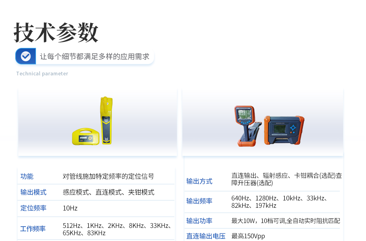| 1、采用DSP處理器,運(yùn)算速度快,精度更高; | 2、帶有導(dǎo)向功能指標(biāo)管線走向,定位更快; | 3、采用10W寬頻發(fā)射機(jī),適應(yīng)各種環(huán)境的探測(cè); | 4、接收機(jī)和發(fā)射機(jī)都采用鋰電池組供電,節(jié)能環(huán)保,每年可節(jié)省3000-5000元的電池費(fèi)用。 |