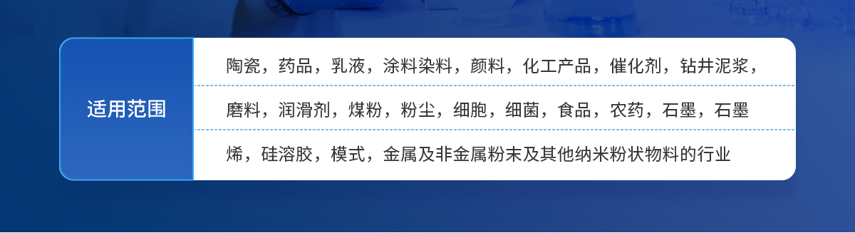 激光粒度分析儀同時具有Zeta電位及納米粒徑的分析測試功能,適用于多種不同的納米乳液、懸浮液膠體等的粒度和表面電位測量,能廣泛應(yīng)用于精細(xì)化工行業(yè)納米材料、表活、低聚物等的研發(fā)和生產(chǎn)質(zhì)控,同時也是油墨,醫(yī)藥制劑等行業(yè)產(chǎn)品研發(fā)及質(zhì)控檢測儀器。