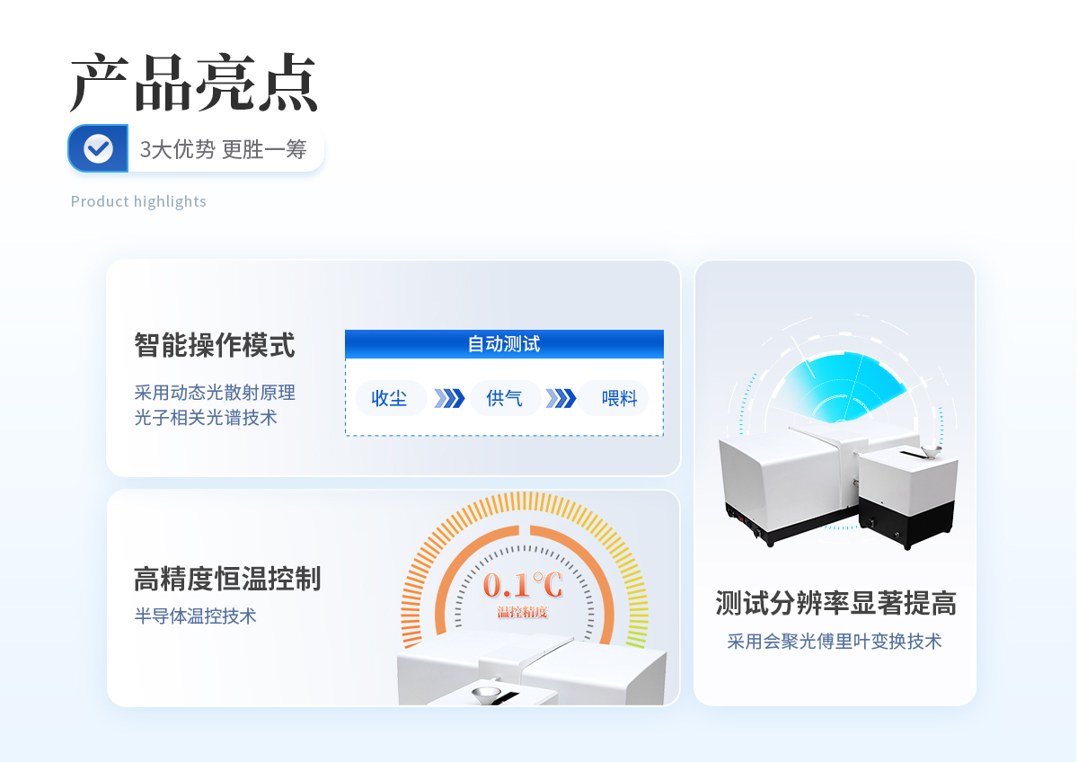 | 測試原理:采用電泳光散射原理和光子相關(guān)光譜技術(shù),根據(jù)顆粒在液體中的電泳運動速度測定顆粒Zeta電位的大小。顆粒電泳運動的群體速度,激光照射這些顆粒,導(dǎo)致的散射光多普勒頻移量不同。光子相關(guān)光譜法就根據(jù)頻移量分析顆粒Zeta電位的大小。 | 超高速數(shù)據(jù)采集:本儀器的核心部件通過HA1024數(shù)字相關(guān)器,能實時完成電泳散射光強(qiáng)的采集和自相關(guān)函數(shù)運算,從而有效地反映顆粒的電泳運動速度的信息,為Zeta電位測試結(jié)果的準(zhǔn)確性奠定基礎(chǔ)。 | 高靈敏度信噪比:采用專業(yè)級高性能光電倍增管,對光子信號具有**的靈敏度和信噪比。 | 高精度恒溫控制:采用半導(dǎo)體溫控技術(shù),溫控精度高達(dá)0.1℃,使樣品在整個測試過程中始終處于恒溫狀態(tài),避免溫度變化而引起液體黏度及布朗運動變化導(dǎo)致的測試偏差,保證測試結(jié)果準(zhǔn)確性及穩(wěn)定性 | 穩(wěn)定的光路系統(tǒng):采用光學(xué)移頻裝置與光纖耦合技術(shù)搭建而成的光路系統(tǒng),使探測系統(tǒng)不僅體積小,而且具有很強(qiáng)的抗干擾能力,從而保證了測試的穩(wěn)定性。 |