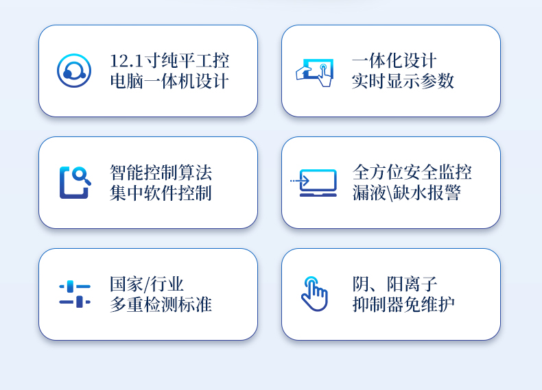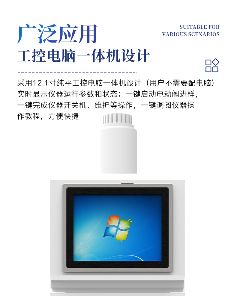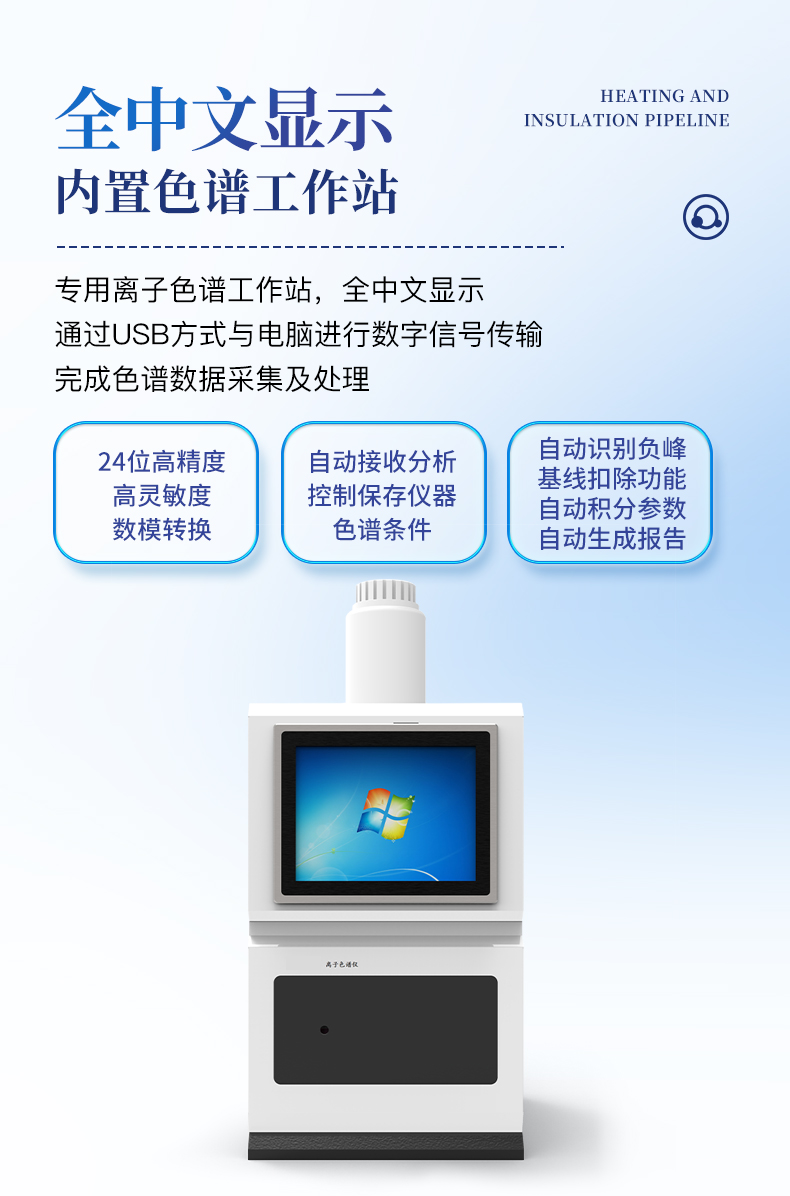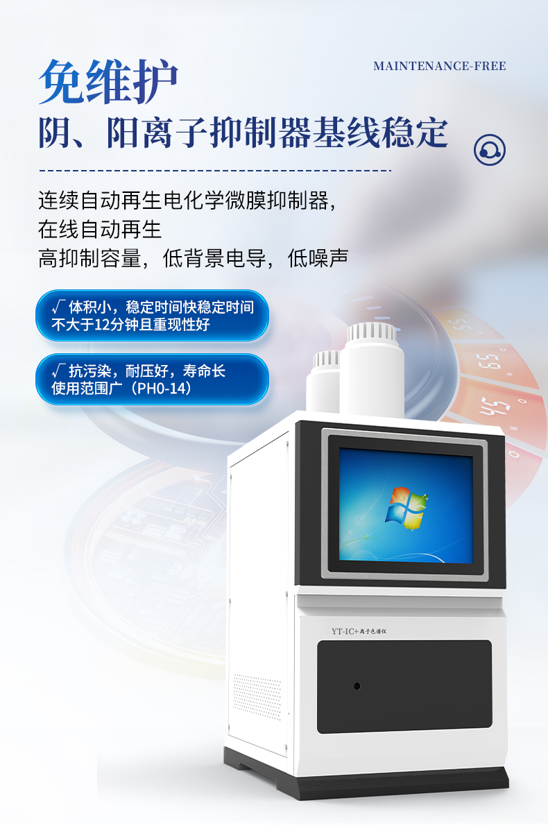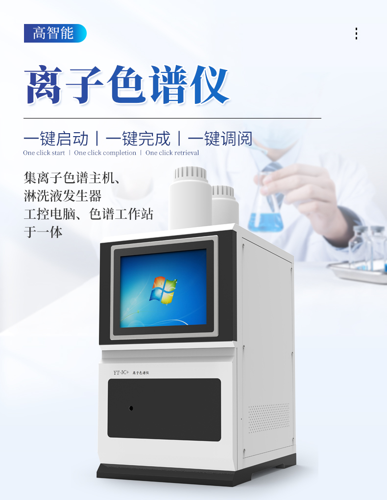 | 全新一代離子色譜儀,采用12.1吋純平工控電腦一體機(jī)設(shè)計(用戶不需要配電腦),實時顯示儀器運(yùn)行參數(shù)和狀態(tài);一鍵啟動電動閥進(jìn)樣,一鍵完成儀器開關(guān)機(jī)、維護(hù)等操作,一鍵調(diào)閱儀器操作教程,方便快捷。 | 離子色譜儀核心零部件自主研發(fā)、自主知識產(chǎn)權(quán)可控。采用一體化設(shè)計,集離子色譜主機(jī)、淋洗液發(fā)生器、工控電腦、色譜工作站于一體,結(jié)構(gòu)緊湊,流路*短,對流路造成的峰型擴(kuò)展有很好的改善。一體化恒溫箱:色譜柱、抑制器、電導(dǎo)池、放大電路都處于同一恒溫系統(tǒng),改善了電導(dǎo)檢測器的溫飄和基線噪聲。內(nèi)置多處漏液報警器和缺水報警器,全方位安全監(jiān)控。由PLC控制的各個部件統(tǒng)一到電腦顯示屏的集中軟件控制系統(tǒng),操作方便,鼠標(biāo)所見即所控。 |
