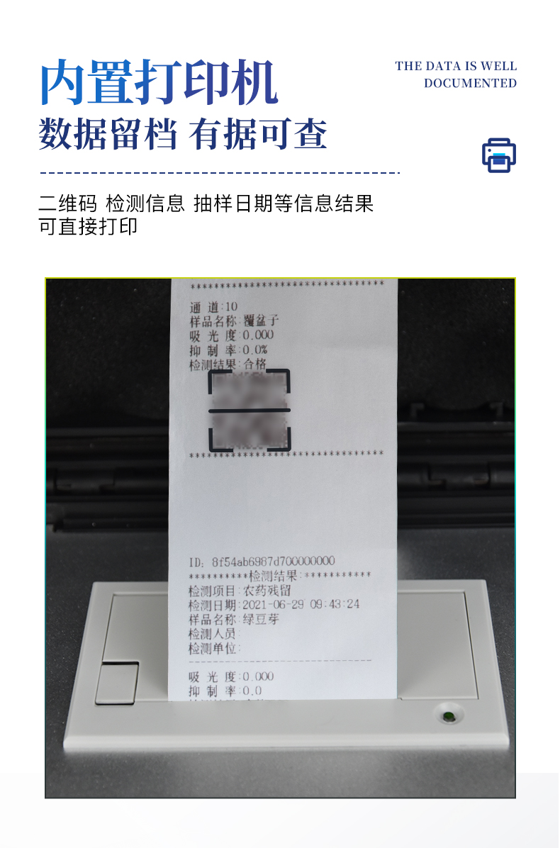 8、打印機(jī)采用串口5v打印,可選擇手動打印或者自動打印,三分鐘出打印結(jié)果,打印格式為檢測人姓名、吸光度差值、檢測時(shí)間、檢測機(jī)構(gòu)、樣品名稱及結(jié)果判定。