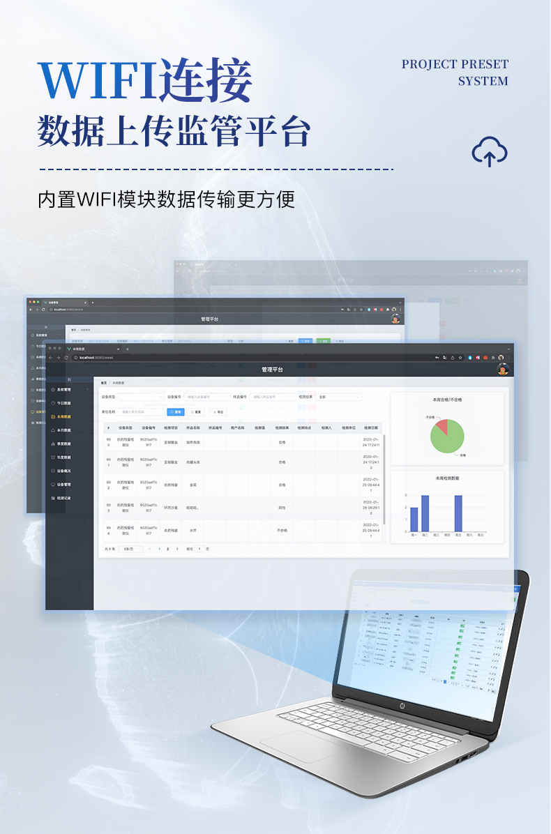 6、儀器具有wifi聯(lián)網(wǎng)功能,可將數(shù)據(jù)快速上傳電腦,進(jìn)行數(shù)據(jù)管理與統(tǒng)計(jì),4G信號GPRS遠(yuǎn)傳功能,可插手機(jī)卡實(shí)現(xiàn)數(shù)據(jù)遠(yuǎn)傳平臺,。