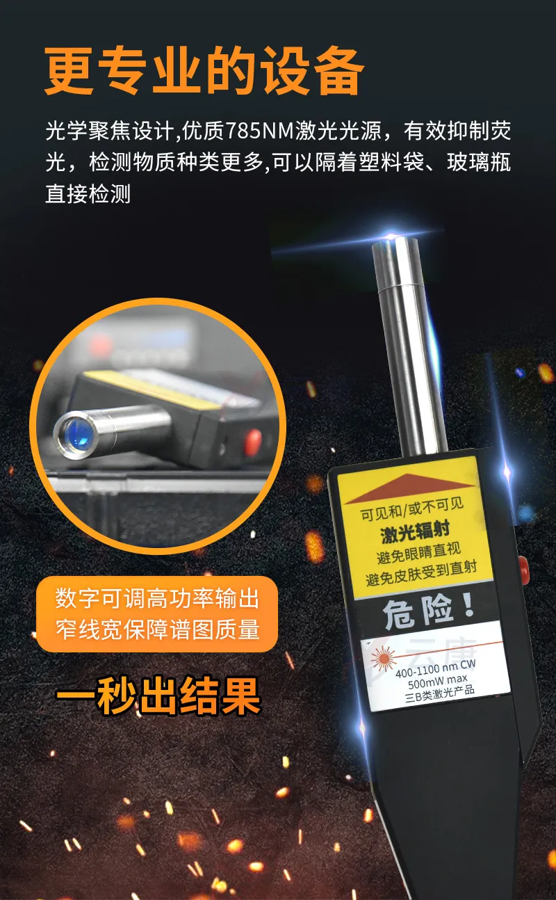 光學(xué)聚焦設(shè)計:可以隔著塑料袋、玻璃瓶直接檢測