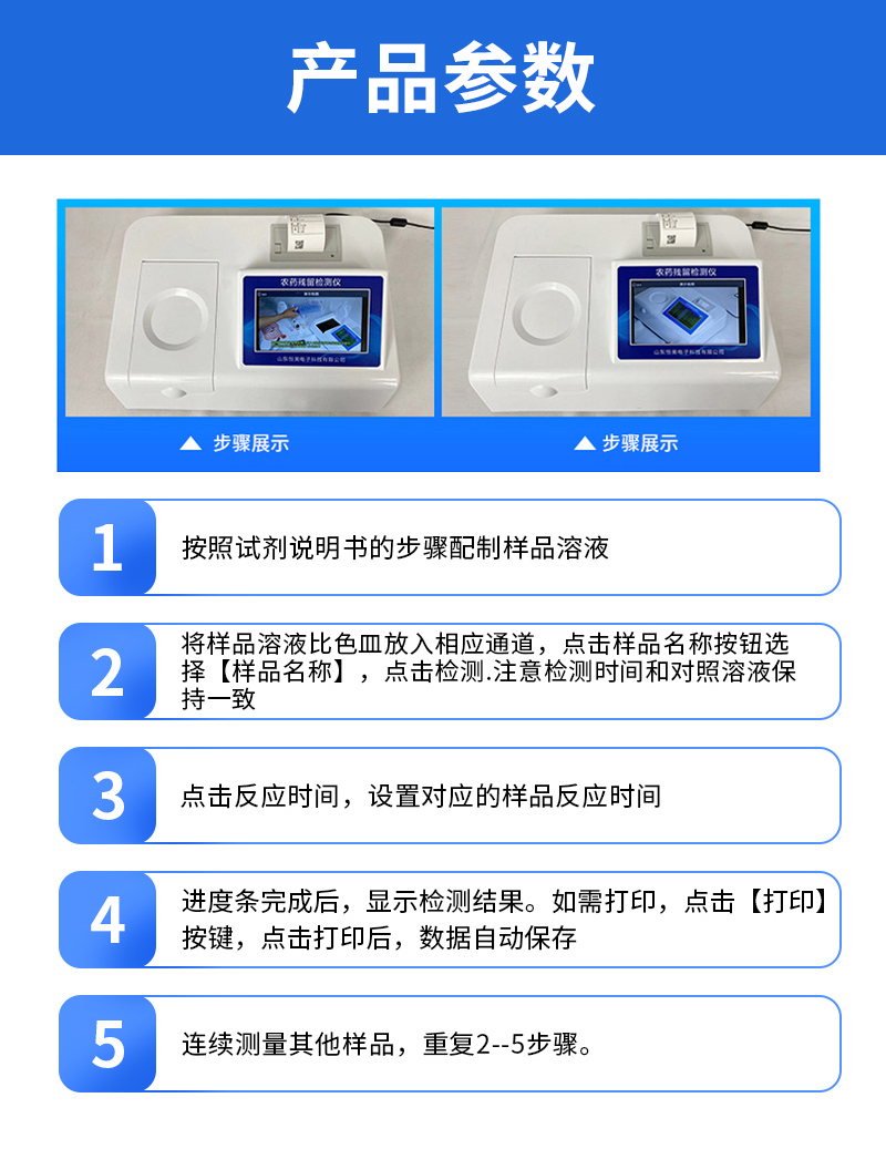 檢測(cè)標(biāo)準(zhǔn):依據(jù)國(guó)家標(biāo)準(zhǔn)方法(GB/T5009.199-2003)以及世界衛(wèi)生組織WHO、世界糧農(nóng)組織FAO殘留農(nóng)藥檢測(cè)標(biāo)準(zhǔn)、世界環(huán)境保護(hù)局EPA參照攝入量等要求來(lái)設(shè)計(jì)。采用酶抑制率比色法對(duì)水果、蔬菜等農(nóng)林產(chǎn)品中有機(jī)磷和氨基甲酸酯類農(nóng)藥含量進(jìn)行快速準(zhǔn)確的檢測(cè),乙酰膽堿酯酶和丁酰膽堿酯酶試劑均可以使用,符合國(guó)家標(biāo)準(zhǔn)和農(nóng)業(yè)部標(biāo)準(zhǔn)的要求。
