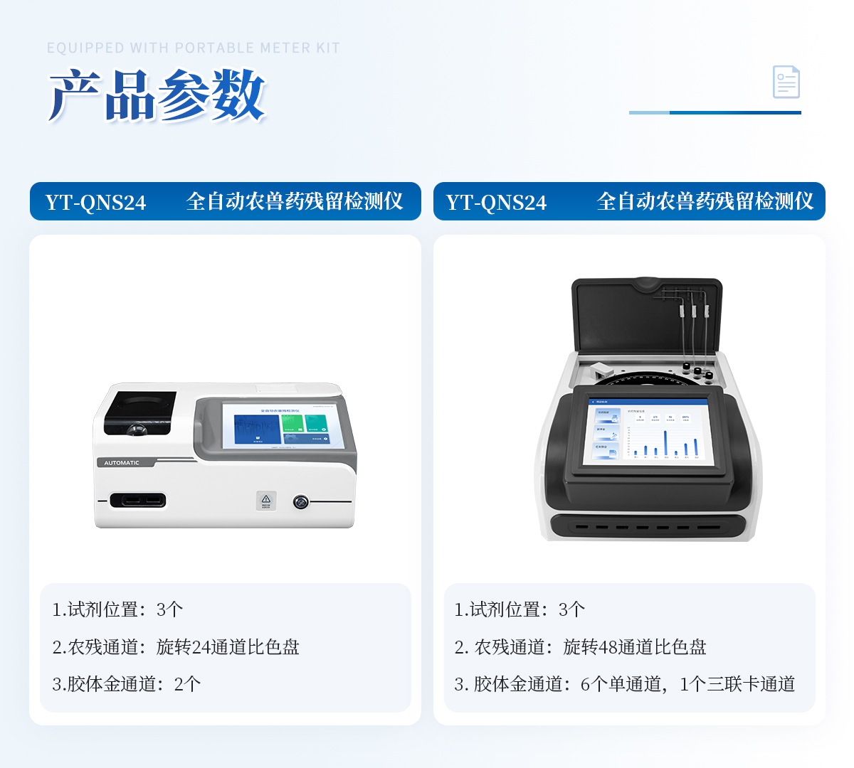 | 1. 試劑位置:3個(gè) | 2. 農(nóng)殘檢測(cè)盤:旋轉(zhuǎn)24通道比色盤,可任意選擇檢測(cè)通道,自動(dòng)對(duì)應(yīng)選擇通道。 | 3. 膠體金通道:2個(gè),可讀取檢測(cè)卡結(jié)果,自動(dòng)采集、處理分析,自動(dòng)判斷檢測(cè)結(jié)果,并具備自動(dòng)判空功能。 | 4.系統(tǒng)配置:10.1寸高清液晶觸摸屏,采用ARM Cortex?-A7,RK3288/4核處理器,運(yùn)行內(nèi)存1GB。Android7.1.1 系統(tǒng)分辨率1280×800。 | 5.恒溫系統(tǒng):具有自動(dòng)加溫溫控系統(tǒng),精準(zhǔn)恒溫37℃,精度±0.1℃。 | 6.添加系統(tǒng):儀器按照試劑要求自動(dòng)、按時(shí)、按量加入試劑,并且自動(dòng)對(duì)未正常放置的樣本或異常的樣本進(jìn)行檢查并提示。 | 7.清洗功能:儀器具備回流及自動(dòng)清洗管路功能,避免試劑污染。 | 8.混勻功能:設(shè)備具備自動(dòng)混勻功能。 | 9.光源校準(zhǔn):設(shè)備可自動(dòng)校準(zhǔn),確保檢測(cè)準(zhǔn)確度。 | 10.實(shí)時(shí)監(jiān)控:儀器測(cè)試過程中屏幕顯示運(yùn)行狀態(tài),可實(shí)時(shí)查看。 | 11.數(shù)據(jù)存儲(chǔ):內(nèi)部存儲(chǔ)16GB,可存儲(chǔ)500萬條數(shù)據(jù)。 | 12.樣品多選功能:設(shè)備具備樣品一鍵多選功能,選擇樣品自動(dòng)匹配檢測(cè)通道。 | 13.項(xiàng)目預(yù)設(shè):可提前設(shè)置單個(gè)及多個(gè)相同或不相同的檢測(cè)任務(wù),可單次或者多次調(diào)取,減少檢測(cè)時(shí)間。 | 14.自定義打印系統(tǒng):內(nèi)置自定義打印系統(tǒng),可按需靈活設(shè)置開啟或關(guān)閉:產(chǎn)品合格證(國(guó)家農(nóng)業(yè)部標(biāo)準(zhǔn)),二維碼,抽樣信息、檢測(cè)信息,受檢信息等信息的打印。 | 15.A4版本報(bào)告打印功能:設(shè)備可自動(dòng)生成A4版報(bào)告,A4報(bào)告帶二維碼,可掃描二維碼生成電子版,并可識(shí)別真?zhèn)巍?/td> | 16.傳輸方式:儀器配備無線通信模塊: 4G(APN)通訊模塊、Wifi模塊,藍(lán)牙傳輸模塊,同時(shí)具有USB接口以及RJ45接口能以多種方式實(shí)現(xiàn)數(shù)據(jù)保存和數(shù)據(jù)傳輸功能,設(shè)備數(shù)據(jù)可以同步上傳至平臺(tái)。 | 17.系統(tǒng)17.數(shù)據(jù)監(jiān)管系統(tǒng):設(shè)備自帶監(jiān)管平臺(tái),并可同步對(duì)接監(jiān)管平臺(tái),數(shù)據(jù)可局域網(wǎng)和互聯(lián)網(wǎng)數(shù)據(jù)上傳,檢測(cè)結(jié)果可直接傳至食品安全監(jiān)管平臺(tái)。達(dá)到食品安全問題預(yù)估、預(yù)警。 | 18.系統(tǒng)遠(yuǎn)程更新功能:無需設(shè)備返廠,即可遠(yuǎn)程實(shí)時(shí)升級(jí)全新系統(tǒng),節(jié)省時(shí)間成本及避免運(yùn)輸造成設(shè)備損。 |