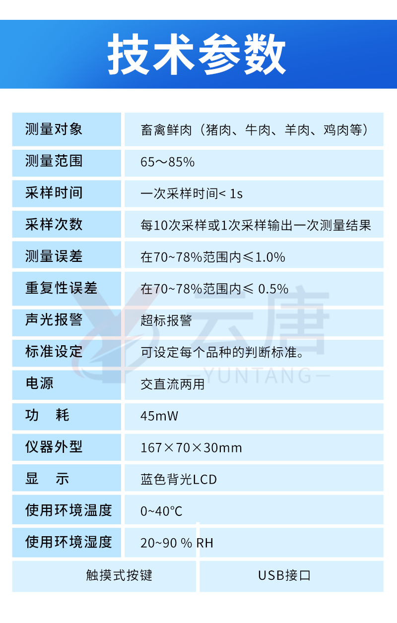 YT-RLS肉類水分檢測儀技術(shù)參數(shù):