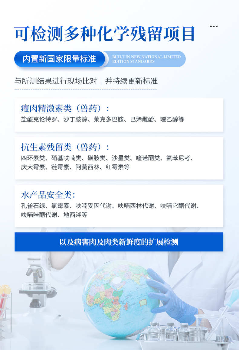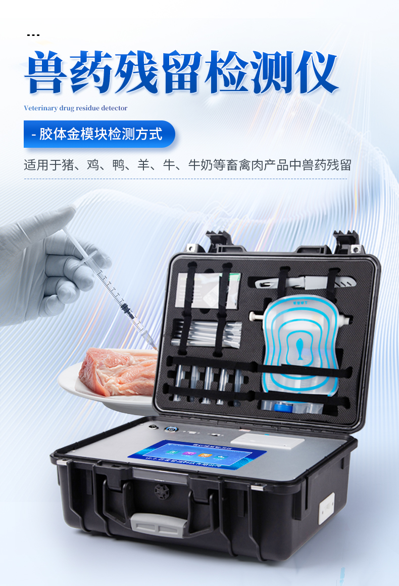 該獸藥殘留檢測儀適用于豬、雞、鴨、羊、牛、牛奶等畜禽肉產(chǎn)品中獸藥殘留,包括抗生素類殘留、瘦肉精激素類殘留和水產(chǎn)品有毒有害物質(zhì)的現(xiàn)場快速篩查定及性定量檢測。