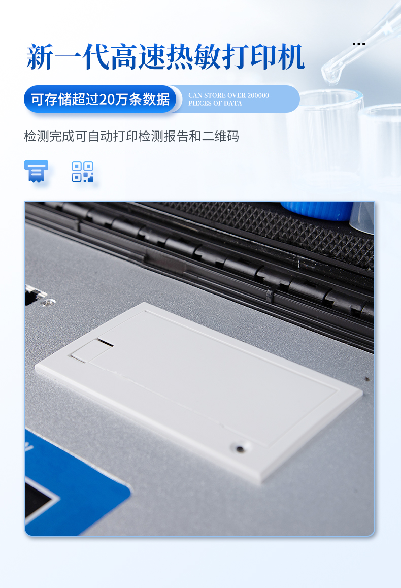 3、新一代高速熱敏打印機(jī),檢測完成可自動打印檢測報告和二維碼。