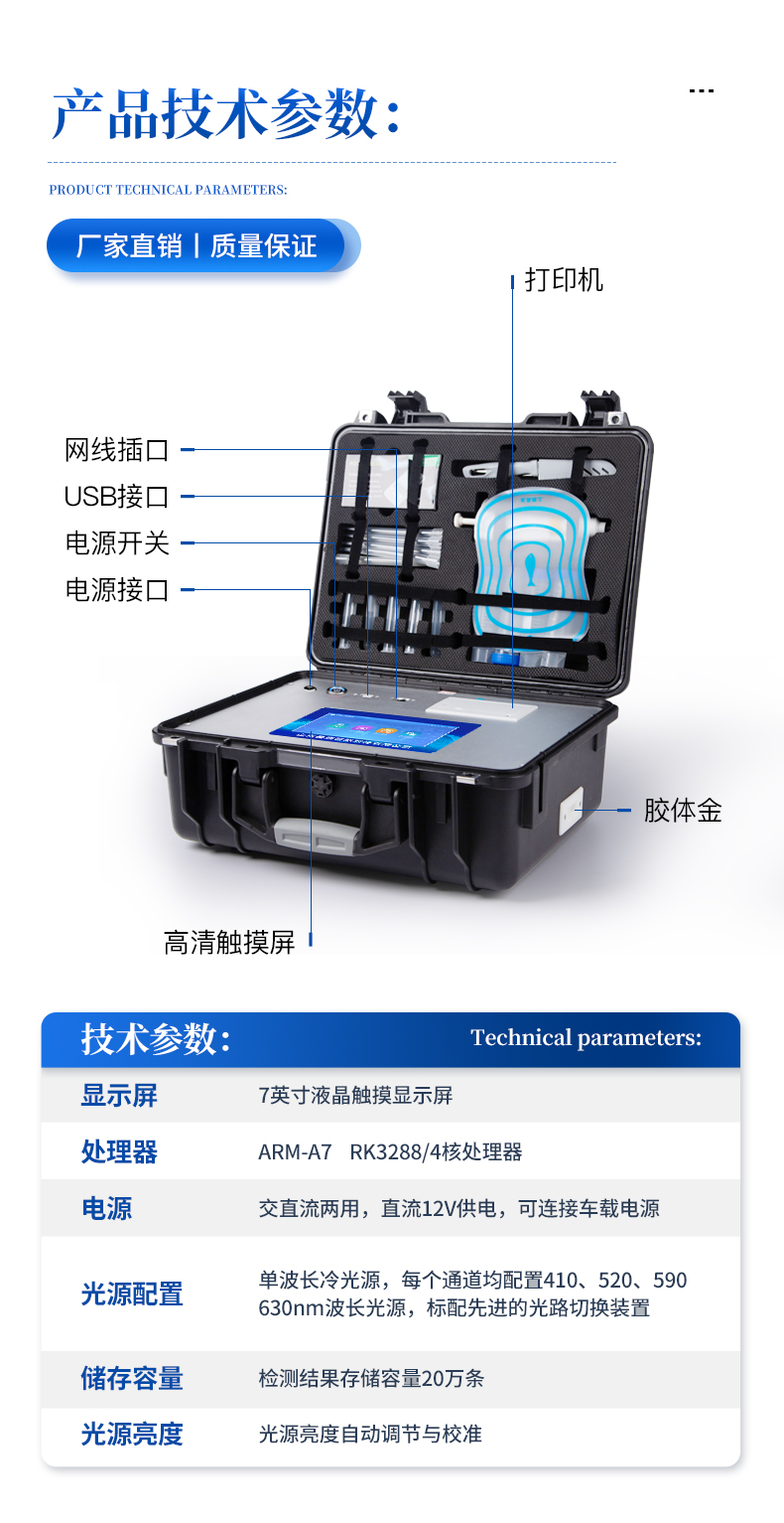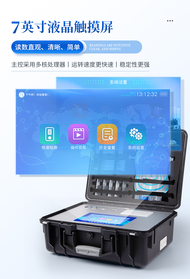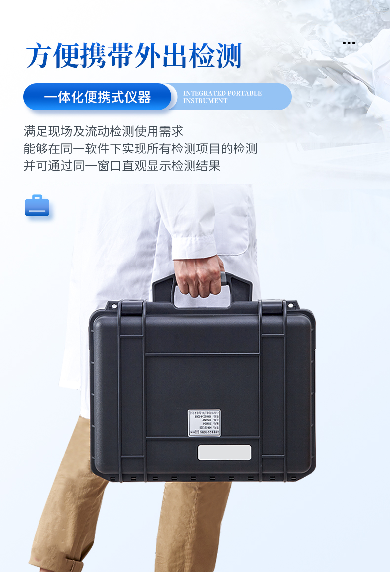 6、一體化便攜式快檢設(shè)備,滿足現(xiàn)場及流動檢測使用需求,能夠在同一軟件下實現(xiàn)所有檢測項目的檢測,并可通過同一窗口直觀顯示檢測結(jié)果。