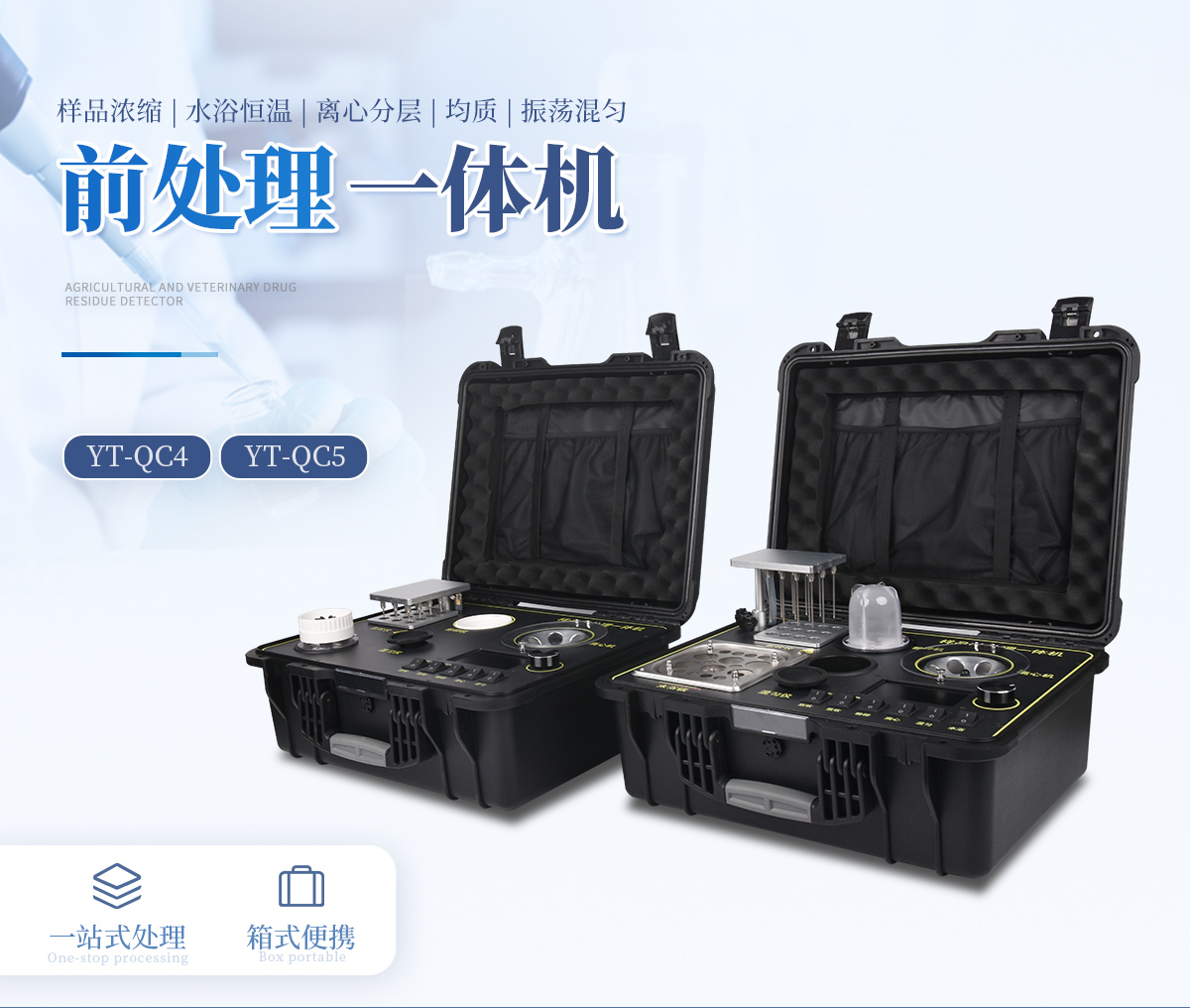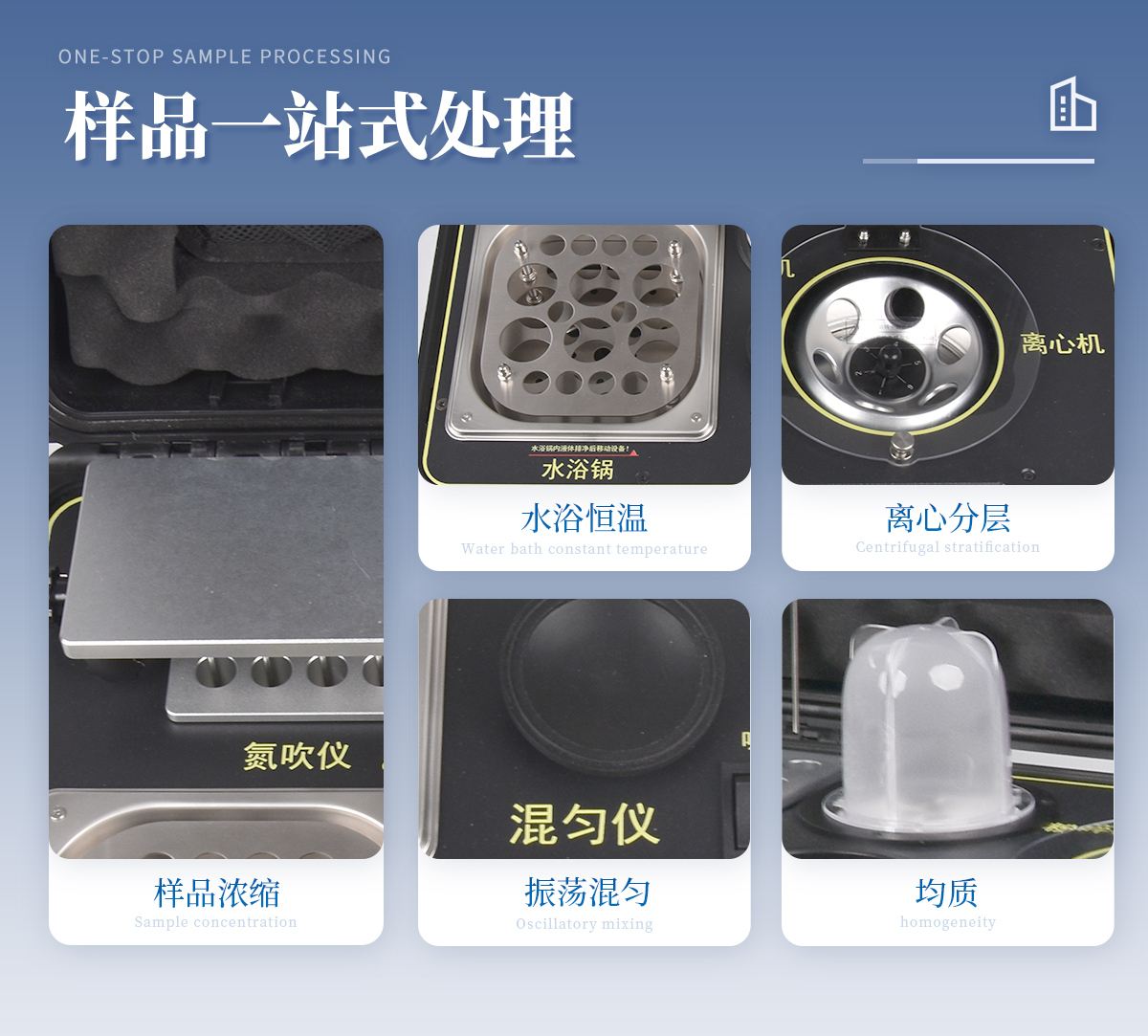 應(yīng)國內(nèi)用戶的實際需求,自行研制開發(fā)的新型儀器——QC05型樣品前處理一體機。樣品前處理集成箱將樣本前處理過程中樣品濃縮、水浴恒溫、離心分層、均質(zhì)、振蕩混勻等步驟所需設(shè)備進(jìn)行集成,僅需一臺樣品前處理集成箱設(shè)備即可完成所有樣本前處理過程,并且方便攜帶,不僅適用于現(xiàn)場檢測使用,還可用于色譜、質(zhì)譜等分析樣品的純化和制備。