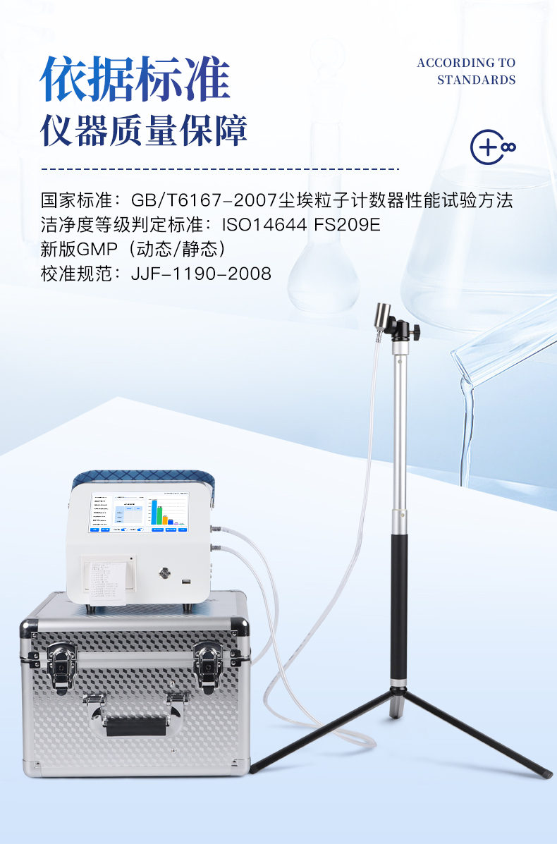 國(guó)家標(biāo)準(zhǔn):GB/T6167-2007塵埃粒子計(jì)數(shù)器性能試驗(yàn)方法 潔凈度等級(jí)判定標(biāo)準(zhǔn):ISO14644 FS209E ,新版GMP(動(dòng)態(tài)/靜態(tài)) 校準(zhǔn)規(guī)范:JJF-1190-2008